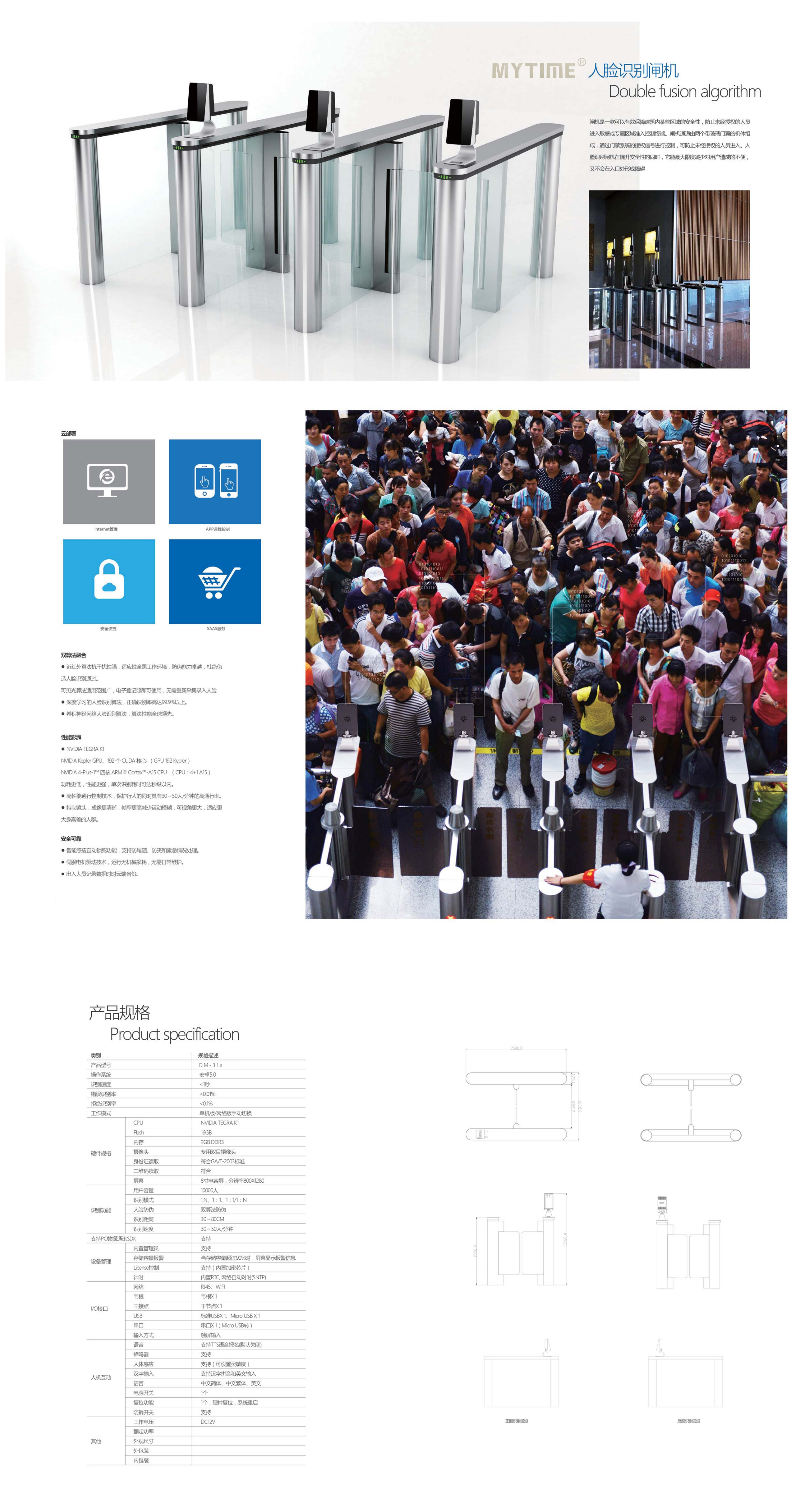 3D人脸+静脉多功能智慧闸机 DM-B1s